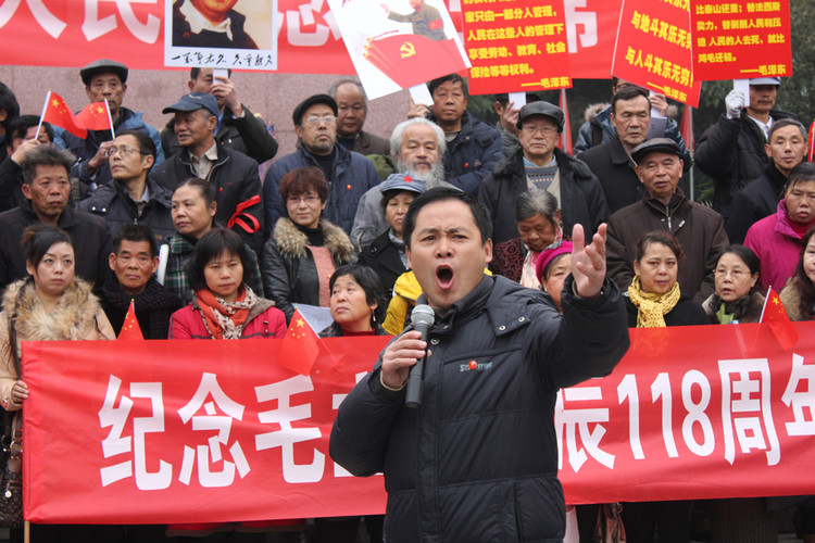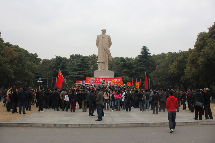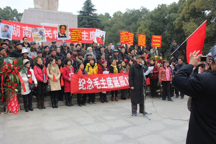 12月26日,来自全省各地的人民群众自发集结在湖南大学东方红广场纪念毛泽东同志诞辰118周年。活动还没开始,就有三三俩俩的警察、校管 人员、城管人员来试图驱赶聚集的人群。理由是集会没有申请、场地是湖南大学的、音响干扰教学等等,不一而足。人们不禁要问:平时成群结队的游客、参观者来此活动都经过申请了吗?这场地不是一直对外公共开放的吗?本广场离教学区有相当一段距离,音响声音有那么大干扰吗?不允许拍照,是谁给你的权利禁止别人拍照?群情激愤的纪念者一轰而上将他们驱逐了出去,这些不识时务的人灰溜溜的走掉了。