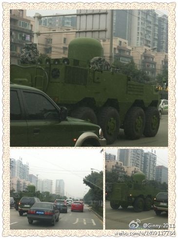 据网友报料,从3月12日至16日,一队新型装甲通讯车队连续5天在成都街头巡逻。这款新型战车是「8X8轮式动中通」,「动中通」是“移动中的卫星地面站通信系统”的简称。新型战车很少在市区出现,而且是一整队连续5天,更是非常罕有。王立军事件发生在成都,薄熙来又刚被免职,现在装甲车队连续5天巡逻成都,令人推想是否与薄王事件有关。
