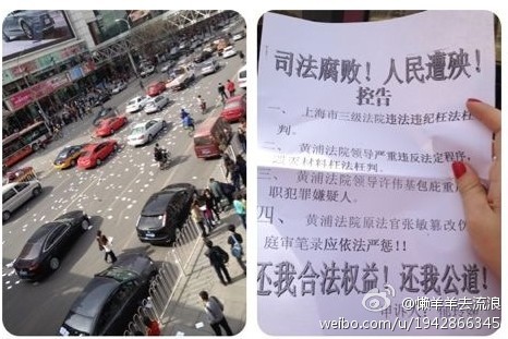 传单内容是控诉上海市三级法院违法违纪和枉法枉判。