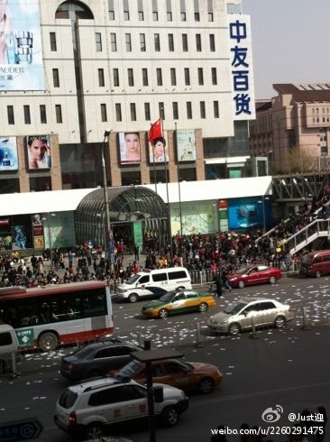 » 北京如惊弓之鸟:冤民西单天桥撒传单 武警极速出动 (图)