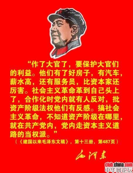 毛泽东还讲到:“县委以上的干部有几十万人,国家的命运就掌握在他们手上。如果搞不好,脱离群众,不是艰苦奋斗,那么,工人、农民、学生就有理由不赞成他们。我们一定要警惕,不要滋长官僚主义作风,不要形成一个脱离人民的贵族阶层。谁犯了官僚主义,不去解决群众的问题,骂群众,压群众,总是不改,群众就有理由把他革掉。”
