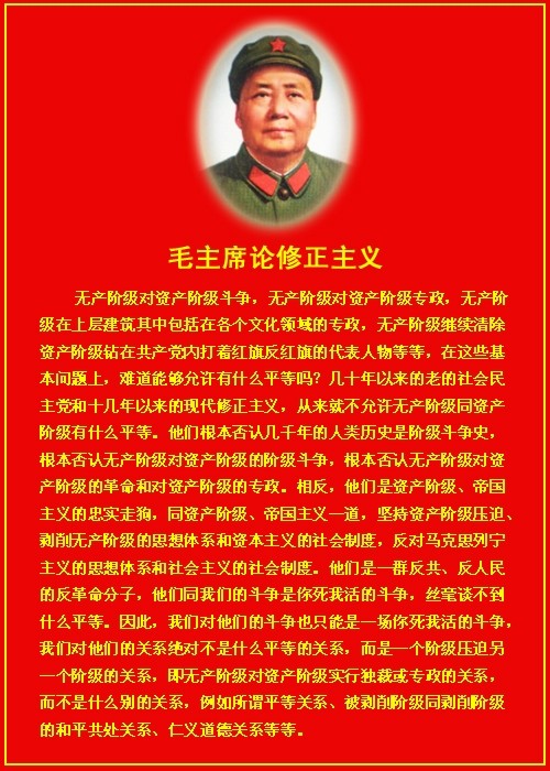 毛泽东一生追求民众民主。直到文化大革命之前,在1964年12月28日中央工作会议上,毛泽东讲话时还拿着两本书,一本是《中国共产党第八次代表大会文件》,一本是《中华人民共和国宪法》。毛泽东在讲话中讲道:请你们回去找党章看一下,宪法第三章也看一下,那是讲民主自由的。有一本书,叫《中国共产党第八次代表大会文件》,第一百页到一百零四页,你们去看一看。不要犯法呀,自己通过的,又不遵守。又有一本书,叫《中华人民共和国宪法》,第三章的第一条,这个条文叫第八十五条,中间讲到,“在法律上一律平等”。然后的八十七条讲到,“中华人民共和国公民有言论、出版、集会、结社、游行、示威的自由”。