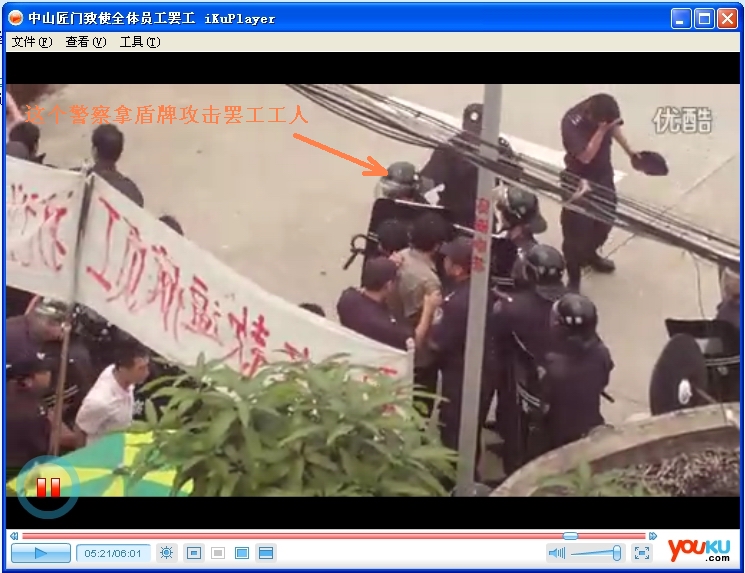 http://v.youku.com/v_show/id_XMzg5NDg1NDg0.html====网友评: 在工人的无数次抗争实践中,工人已经非常清楚,反抗的最大障碍就是法西斯政府及其警察军队。