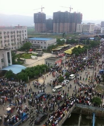 5月28日上午,死者家属和同乡数百人去仙降镇政府讨说法,镇政府偏袒厂方,导致民工聚积已久的愤怒爆发出来。消息传开后,仙降镇很多民工赶来支援,数万人围攻镇政府,群众扔石块、砖头和酒瓶,将政府的车砸坏、掀翻,局面完全失控。