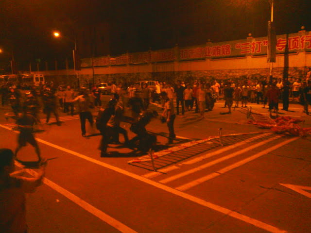 点评:河蟹资产阶级政府对待人民群众从来不手软,20多年前64就是证明,今天的沙溪镇压也是证明,毛主席晚年做了预言,资产阶级复辟上台,对劳动人民实行的是法西斯专政。复辟30多年过去了,人民无时无刻不受到忽悠、剥削、压迫、镇压。但主席也做了预言,中国一旦发生资产阶级复辟,他们将是短命的,人民自发组织起来,打倒他们。3、三天来沙溪事件上传的部分图片