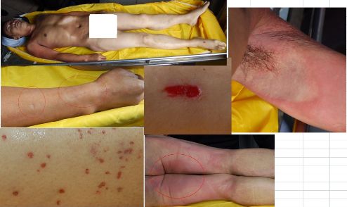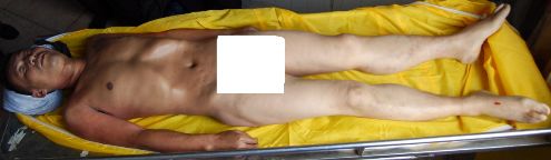 在家属的一再抗争下,于2011年10月29日终于在项城市殡仪馆见到受害人伤痕累累的尸体,更让家属感到死者的死因非常可疑,尸体诸多地方呈现刑讯逼供的痕迹,双手呈黑紫色、手腕处、腋窝以及腿部等均有不同程度的伤痕(均由现场照片为证)。