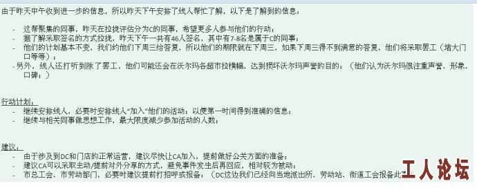http://tieba.baidu.com/p/1704871150 十四楼的网友回复的内容里贴出了一张截图,如果截图内容属实,确实是沃尔玛高层内部邮件的话,我岂能不恨不悔?!恨的是沃尔玛这些所谓的高管太卑鄙了,为了裁员不择手段,让他们所谓的线人到员工中间进行挑拨离间,收集情报,真是用心良苦呀。在警匪片谍战片里才出现的线人,竟然出现在沃尔玛这样的零售巨头里,真不知道零售行业里究竟有多少沃尔玛这样的线人,他们的商业秘密是不是已经全部被沃尔玛掌握了?他们机密的进货价格对沃尔玛来说是不是已经不是机密了呢?悔的是同事们竟然头脑发热中了他们的奸计,掉进了他们设计好的陷阱里。从邮件的内容看来,往后我们要走一裁二审这条路,结果必定没有任何悬念。当地派出所、街道办、劳动站、市总工会、市劳动局、深圳市的新闻媒体都被沃尔玛公关了。以他强大的经济实力公关了政府相关部门,我们这些弱势群体在维权的路上还有什么胜算的可能呢!!!