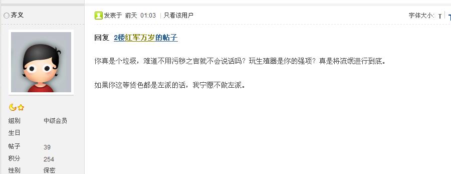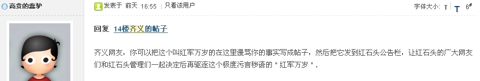 这是网友高贵的蠢驴对14楼的网友齐义的回帖。