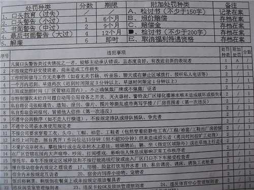 一、“军事化管理”毫无人性1、制度严苛 厂规厂纪多达百条