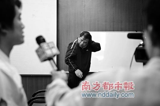 ▲昨日,卢先生一紧张就满头大汗,情绪很不稳。