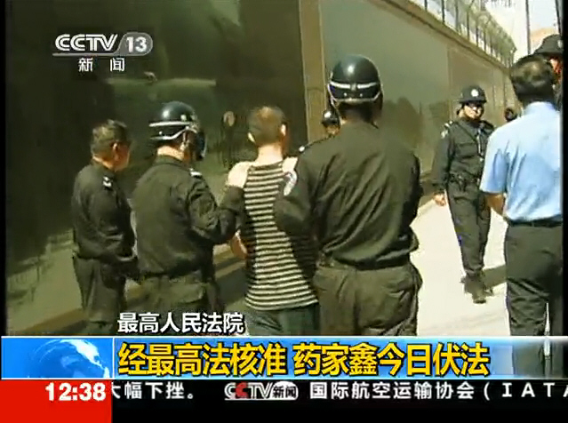 西安市中级人民法院今天上午在宣告上诉裁定后,对药家鑫执行死刑