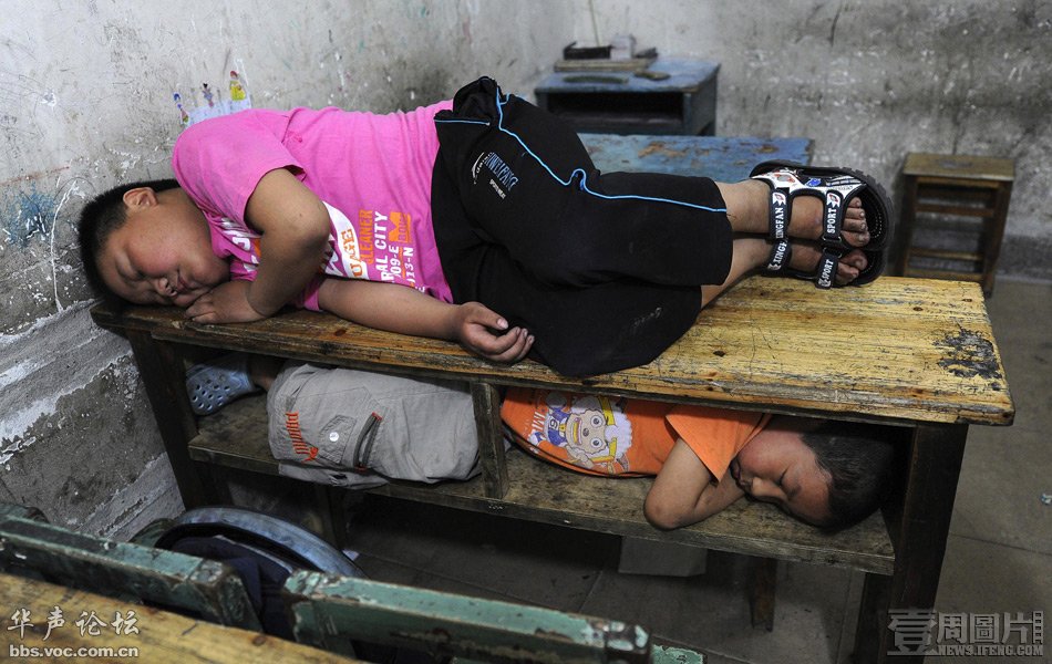 6月1日,合肥一所民工子弟小学内,两名孩子在午休。