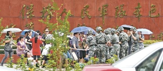 » 驻港部队军眷百人请愿 数十士兵冲出 强抢标语