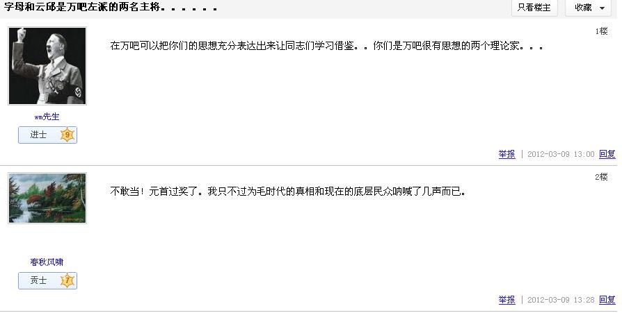 看到现在,各位对这些万吧上的"左派",都会有个深刻的印象了.