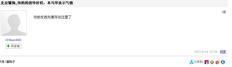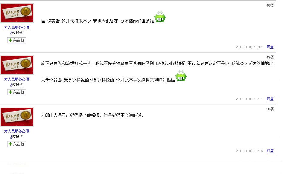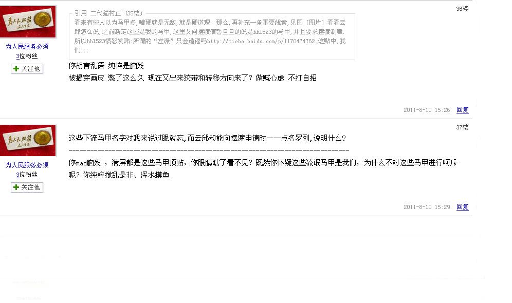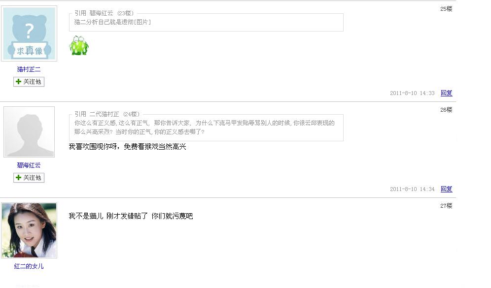 11年8月10日,经过发贴揭露下流马甲的动机后,目的后,8月11日开始,下流马甲全部消失.