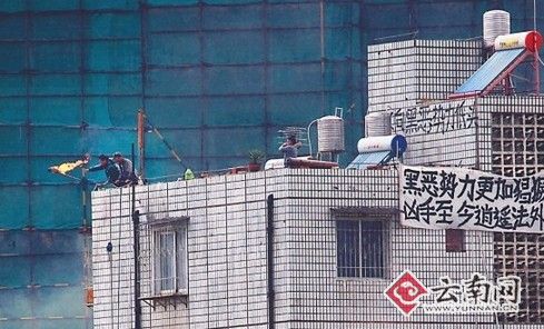 钉子户自制燃烧弹对抗拆迁 楼顶放千块砖头(图)