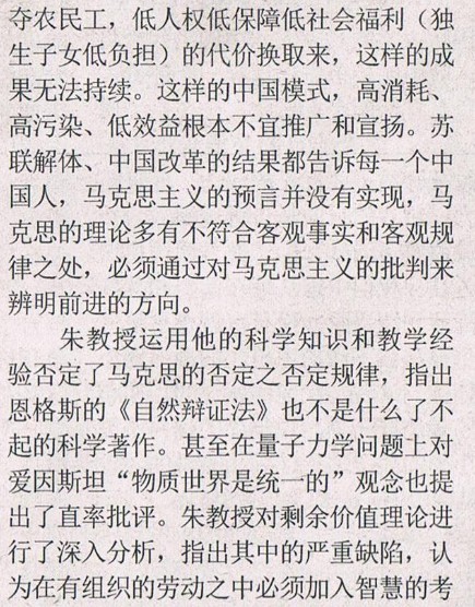 看到一篇文章,一个叫朱振的物理学教授,向网络发表了他的《马克思主义的批判》,他在中国真共产党建党的纪念节日的时候,放出这样的狗屁不通的文字,似乎代表了一些所谓的文化精蝇和资产阶级的头脑,实际上,是一个傻X,是一个有典型性的无知的傻X。