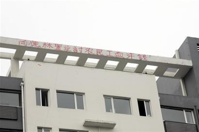 记者立即赶到位于黑龙江路与枣山路交界处,还没进小区大门,就看到一座居民楼靠近马路一侧的白色墙体上有讨薪标语,五六名中年男子在门口商量着什么。