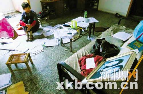 新快报记者在襄阳市二十中教师宿舍找到徐浩家时,看到的景象堪称惨淡:法院判决、律师辩护词、证人证言、申诉材料,铺满了客厅,外加茶几。当时是下午1点,徐的母亲、退休教师赵克凤连早饭都没吃上。沙发上摆着徐父的遗像。