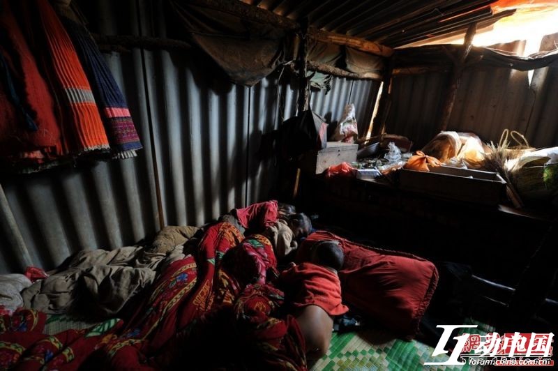 长坡脚, 三个没吃饭饿着躺床上等家人回来的孩子。黄兴能 摄