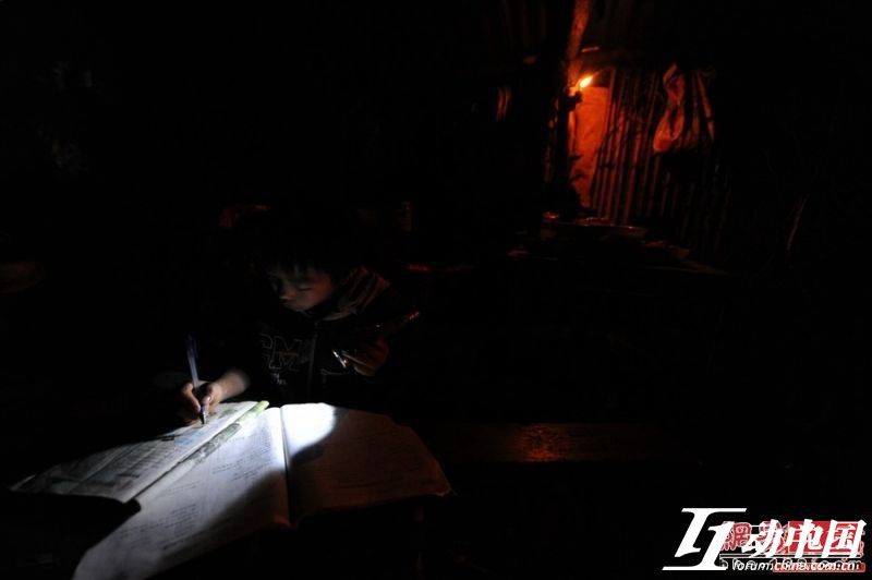 没电,孩子夜里做作业只能打着手电。黄兴能 摄