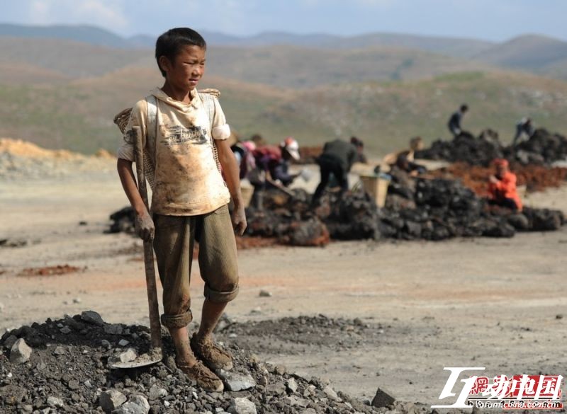 长坡脚村长十岁的孩子到煤矿上捡废煤渣。黄兴能 摄