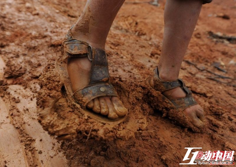 马头坡,泥泞路上一个孩子的脚。黄兴能 摄