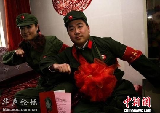 » 山西80后办红色婚礼 新娘高喊毛主席万岁(组图)