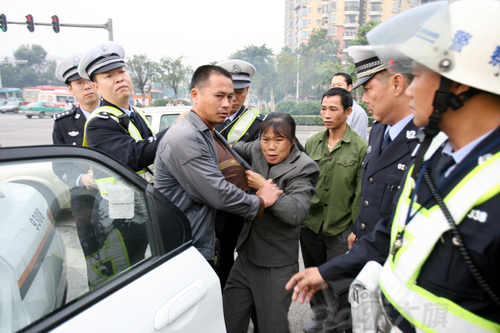 陈某的大女儿用仇恨的眼光盯着交警开出罚单