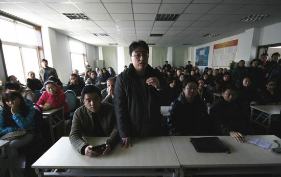 2月28日下午,山东青岛辽源路街道办事处内,青岛信访局某处长要求前来倾听官方答复的100余名业主按照《信访条例》选出5名代表进行对话。经过1个小时的交涉,5名小区业主自愿成为代表与青岛市供电局、规划局、环保局、万科蓝山负责人、信访局五个部门的工作人员进行交涉。
