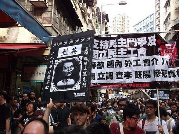 在香港,相关声援与抗议活动更是一浪高过一浪。从6月7日起,香港就陆续出现各种小规模的悼念活动和游行抗议。6月10日香港泛民主派举行了有2万5千人参与的悼念李旺阳大游行,6月13日,李旺阳死亡“头七”,香港泛民主派数百人再在立法会外集会举行烛光悼念抗议。中国劳工论坛在香港的兄弟团体社会主义行动的支持者们也参与以上两次活动。