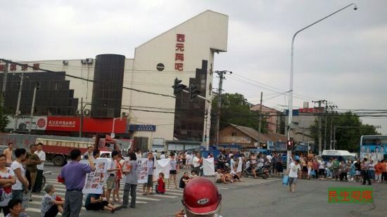 民生观察工作室2012年7月12日消息:今天上午,武汉市硚口区长丰村二百余居民将村口的马路堵住。居民们还打出写有“严惩打人凶手”、“抵制暴力拆迁”的多幅标语进行抗议。