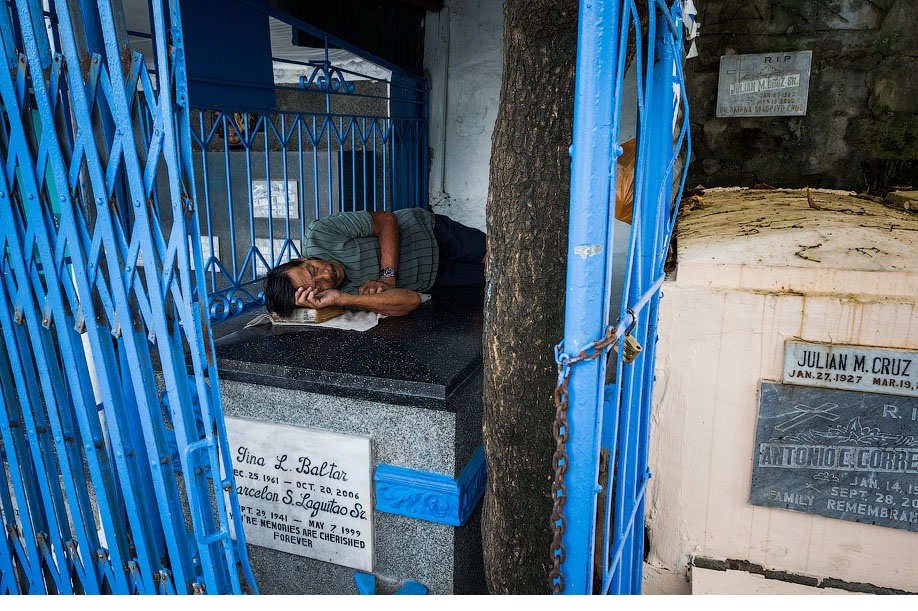 在菲律宾首都马尼拉有一座建于19世纪初的“城北公墓”,是菲律宾全国最大的陵园之一,占地54公顷。公墓内葬有数十万亡灵,其中不乏社会名流、达官贵人,甚至还有三位已故总统。在房价高企、房租昂贵的马尼拉,许多无家可归者干脆以墓地为家。