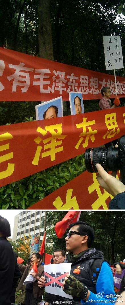 昨 天1.8日救党保国派去砸场子,标语写:“支持习近平,支持共产党”,的确有辱毛泽东的革命思想。今天1.9日,看到换了几个标语,似乎有所进步!特别是民主的标语,见下图,