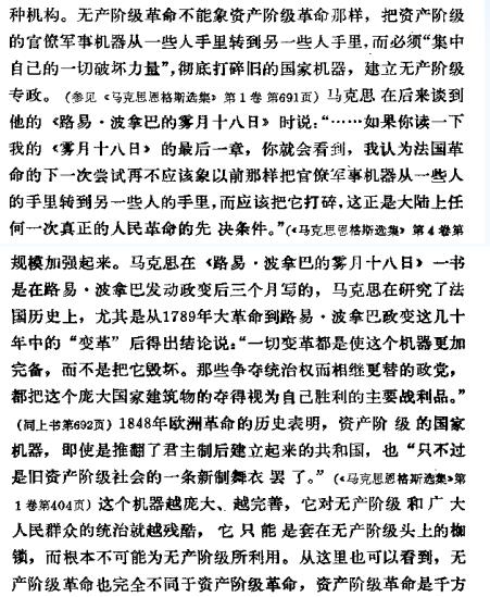 例如, 从1949年解放后到1976年的反革命政变这段27年的时间内, 中国这架庞大的无产阶级专政的大机器一直在沿着毛主席的革命路线运转, 1976.10.06的政变并不能、也无可能将中国这架庞大的无产阶级专政的大机器立即停止运转。这是为什么呢? 因为10.6政变虽然在一夜之间使无产阶级失去了领导权, 政权落到了无产阶级革命的叛徒手中, 但这仅指上层建筑的最高层(中央)而言, 要停止、逆转、直至废除这架庞大的无产阶级专政的大机器, 换句话就是说要停止、逆转、直至废除由毛主席亲自制定的党的基本路线以及在上层建筑和经济基础各个领域里的一系列路线、方针、政策, 换掉党和国家各级领导班子里对毛主席无产阶级革命路线忠诚理解、执行的骨干队伍, 等等, 这必然要采取一系列的措施, 这将有一个过程。