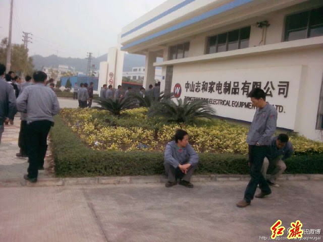 2013年1月28日,广东中山市坦洲镇,志和家电公司,全体员工举行罢工,抗议公司不发年终奖。29日,罢工工人与警察发生冲突,有工人被打伤。