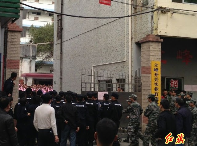 2013年1月31日,广东惠州市博罗县,立峰开关实业公司,全体员工罢工,要求提高工资待遇。