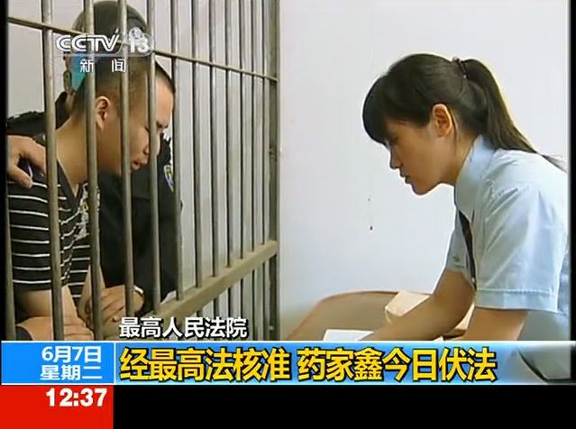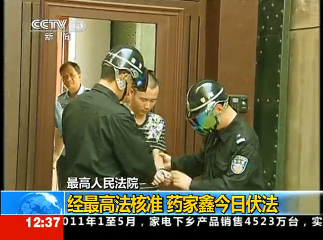 西安市中级人民法院今天上午在宣告上诉裁定后,对药家鑫执行死刑