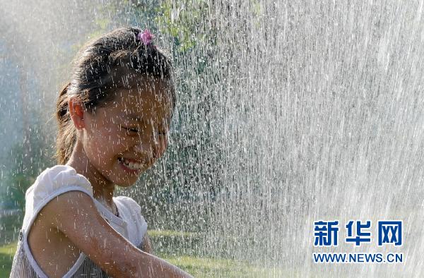 6月7日,一位女孩在郑州街头一处喷泉边玩水。当日,据河南省郑州市气象部门报告,郑州市区的最高气温达40.5摄氏度。郑州市气象台发布了高温红色预警信号。 新华社记者 朱祥 摄