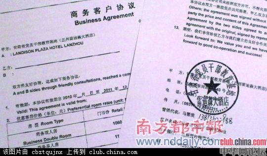 网友上传的客户协议样本显示,该酒店标准称谓为“省党员干部教育基地”。