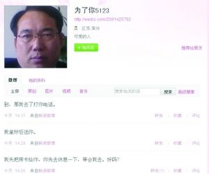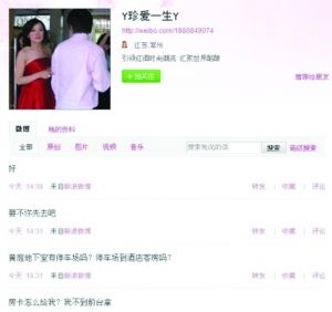 5月25日11:10来自新浪微博,“宝贝,今后我们还是少通电话少发短信,微博上见。想得厉害微博上约好在什么地方见,好吗?”男方的博文,两人的关系可见不浅。