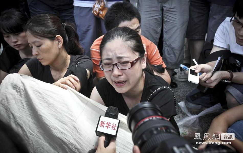 7月27日,7.23温州动车事故遇难者家属聚集温州南站表达诉求。遇难者家属代表提出四个诉求:调查原因说明真相,铁道部大领导与他们见面,解决老人小孩安抚问题,按地方风俗入土归安。图为16时12分,家属拦住进站检票口。