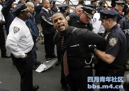 一星期前,“占领华尔街运动”成员组织在联合广场商业区游行,示威人群涌入道路中间、影响交通,警方逮捕80人。