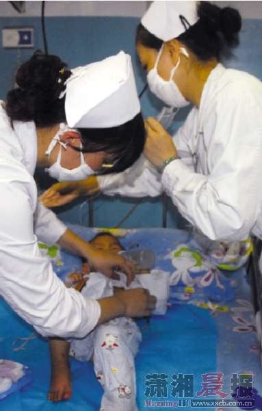 湘雅二医院医护人员正在为小梦做治疗。本版图/通讯员王建新