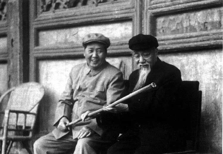 1954年9月,第一届全国人民代表大会第一次会议通过了由毛泽东主持起草的《中华人民共和国宪法》,他在这次会议上当选为中华人民共和国第一任主席,任职到1959年4月。图为1954年5月20日,毛泽东与陈叔通在午门城楼休息。