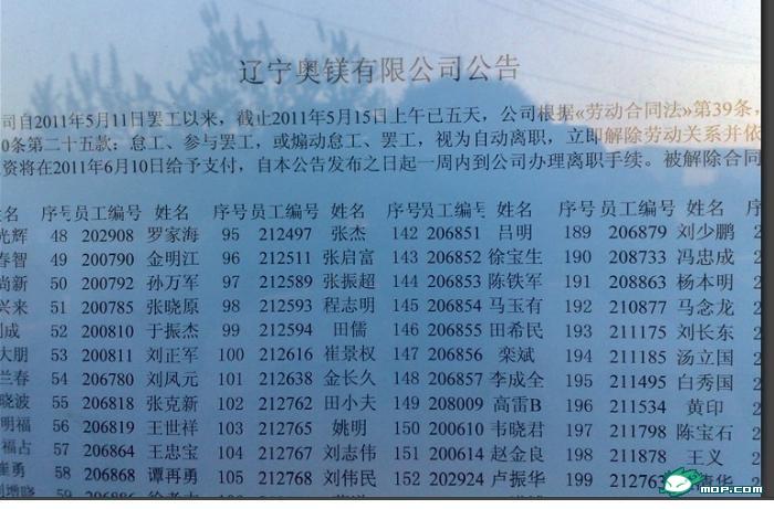 辽宁奥镁(RHI)公然一日开除所有参与维权工人将近400余人 [复制链接]