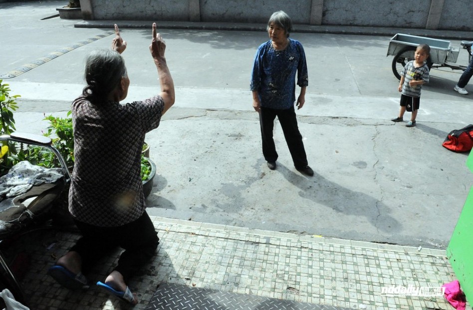 7日中午,西乡河东社区,杨武(化名)和妻子王娟(化名)租住的店铺门前,犯罪嫌疑人杨喜利的母亲带着孙子在堵门谩骂,杨武(化名)70岁老母不堪侮辱跪地质问罪犯的母亲“天理何在?”